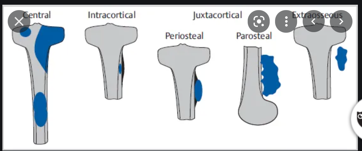 108. Osteosarcoma most common subtype – LEAST LIKELY a. Primary b. Intracortical c. Metaphyseal d. High grade e. Osteoblastic