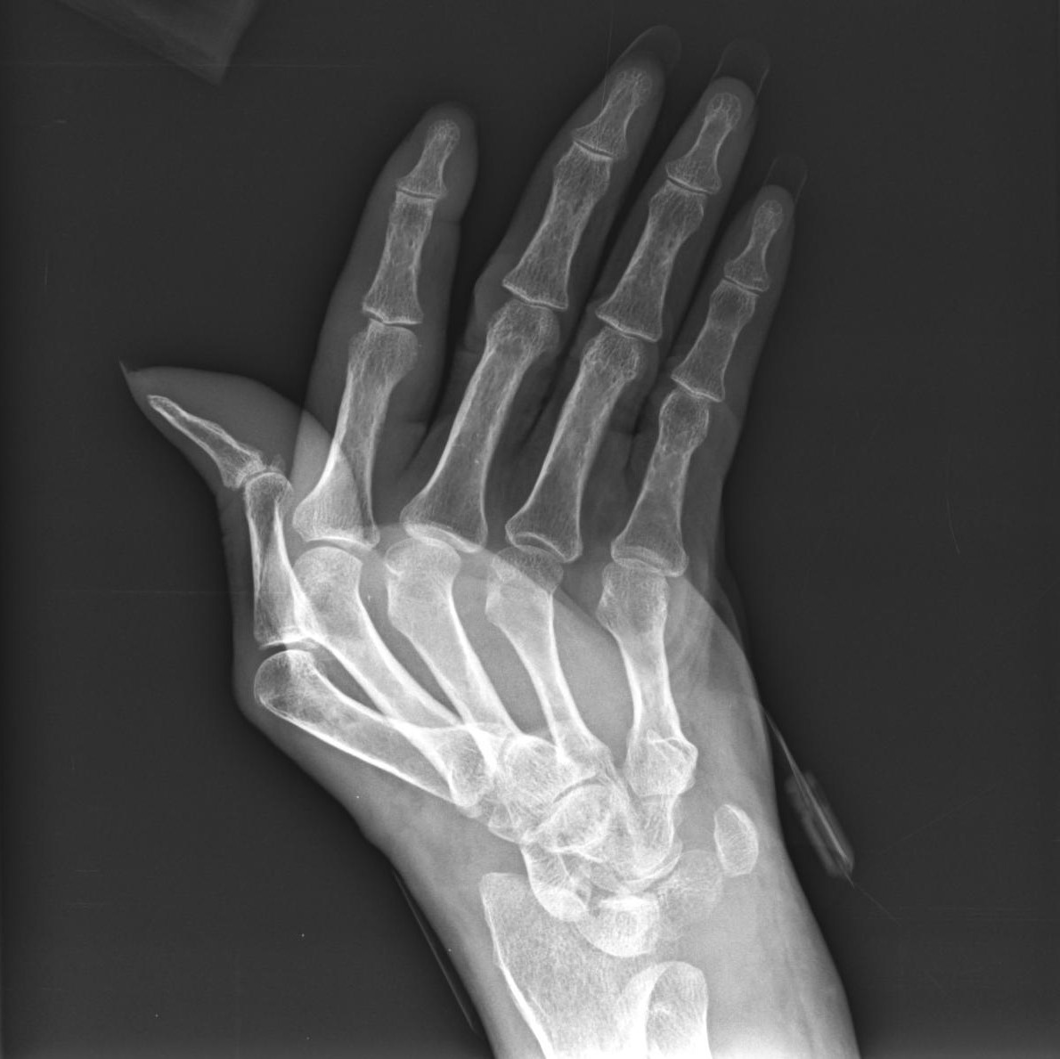 Findings: Marked widening of the distal radial growth plate across its entire area, with metaphyseal irregularity and cystic change. Band of metaphyseal sclerosis with no osseous destruction beyond this. Metaphyseal erosion and widening with a sclerotic border at the distal radial growth plate is compatible with gymnast wrist Gymnast wrist is a term that is used to describe a variety of chronic overuse injuries of the wrist in gymnasts with an immature skeleton. Gymnast wrist comprises a combination of osseous and ligamentous injuries and usually manifests as a chronic Salter-Harris type I fracture of the distal radial physis on radiography 1. Epidemiology Distal radial physeal injury is common in gymnasts, and occasionally occurs in other sports 2. The distal radius is mostly involved because it bears the primary stressful forces in the wrist joint 1. Clinical presentation Pain with gradual onset and exaggeration by weight-bearing activities while the wrist in extension position. Often, range of motion is normal on physical examination, and frequently swelling and tenderness over the distal radius presents 2. Pathology Gymnast wrist results from repetitive compressive forces applied to the distal radial physeal plate during participation in sports like gymnastics and weight-lifting that place a great tension on the physis and adjacent structures 1. Radiographic features physeal plate widening physeal plate irregularity metaphyseal and less commonly epiphyseal sclerosis and irregularity 1,4 physeal plate bridging/fusion in late stage of the disease 1 Plain radiograph Most of the above-mentioned physeal, metaphyseal and epiphyseal changes are usually evident on radiography 1-3. MRI MRI may be used when radiographs are inconclusive. MRI can demonstrate the greater detail about the physeal cartilage and oedema in the adjacent bones before these changes become visible on radiographs 4. It is worth mentioning that MRI is crucial in high-risk patients with chronic wrist pain because early detection is essential in preventing further damage to the distal radial physis 1. Treatment and prognosis As with similar injuries, the mainstay of treatment is rest with ice packs and anti-inflammatory agents as required. The prognosis is dependant on the stage of the injury and radiographic findings at the time of diagnosis, with splint/cast immobilisation, recovery may take anywhere from one to six months 2. Complications Complications of untreated fracture include: early physeal closure of the distal radius leading to positive ulnar variance and Madelung-type deformity in cases that lack proper treatment or experience a prolonged healing process 1,3,4 triangular fibrocartilage complex (TFCC) injury 4