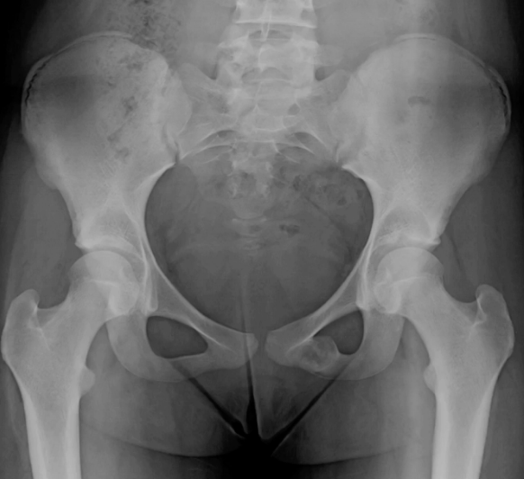 Rectus femoris AIIS avulsion ## Footnote Introduction An apophyseal avulsion injury seen in adolescent athletes Epidemiologydemographics most often in adolescents between the ages 14-17 males more often than females occurs most often in sports involving kicking Pathophysiologymechanismtypically occurs due to eccentric contraction of the rectus femoris (femoral n.) as hip extends and knee is flexed causes avulsion of its anatomic origin off the pelvis Anatomy Anterior inferior iliac spine a bony prominence just above acetabulum is the origin of the direct head of the rectus femoris (femoral n.) Presentation History sudden "pop" in pelvis Symptoms pain and weakness Physical exam antalgic gait anterior hip pain and hip flexion weakness Imaging Radiographs show avulsion of AIIS Treatment Nonoperativebed-rest, ice, activity modificationindications almost all treated nonoperatively techniquehip flexed for 2 weeks position lessens stretch of affected muscle and apophysis follow with guarded weight bearing for 4 week Complications Loss of reduction Delayed union