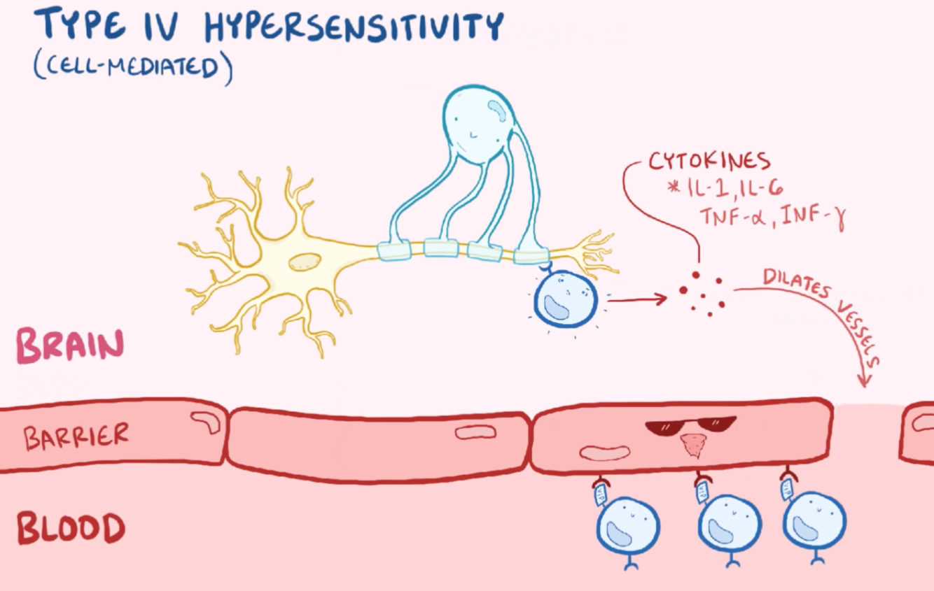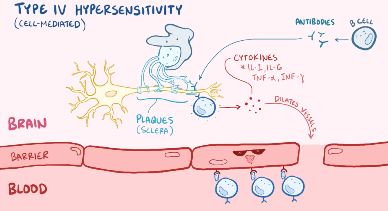 (BBB opens up & the T cells rush in → lesions; then they regress)