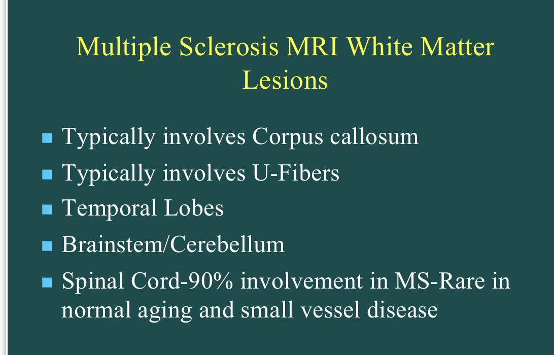 Describe the MS lesions seen on MRI.