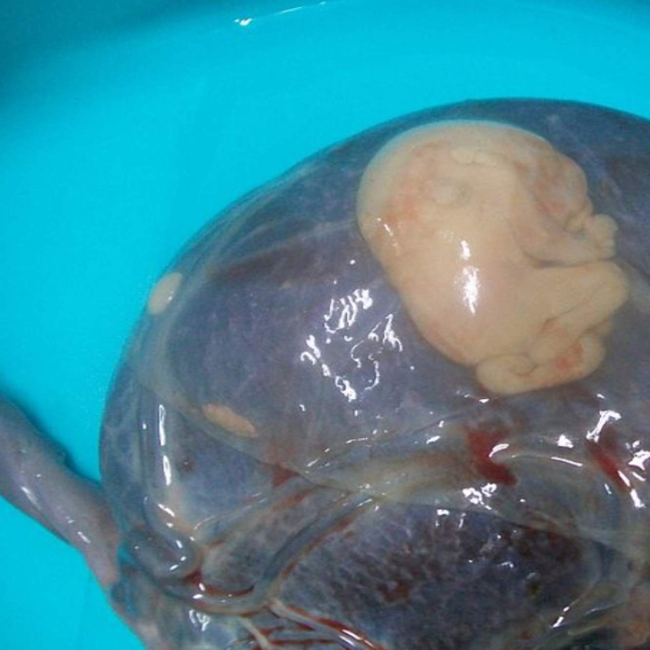 Membrane between them easy to see (4 layers thick). If two placentas close together then there is a triangular shape where the membranes meet the placenta