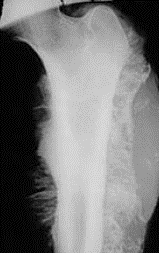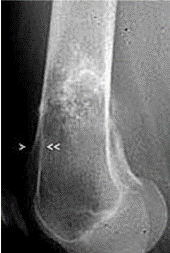 periosteal reaction caused by slow-growing tumors that provoke cortical thickening
