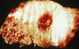 uniform, cartilaginous cap with stippled calcifications; cortex and medulla are continuous with those of lesion