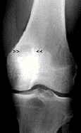 irregular but circumscribed, radiolucent epiphyseal lesion surrounded by reactive bone sclerosis