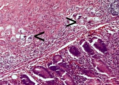 Appendix or colon with this organism