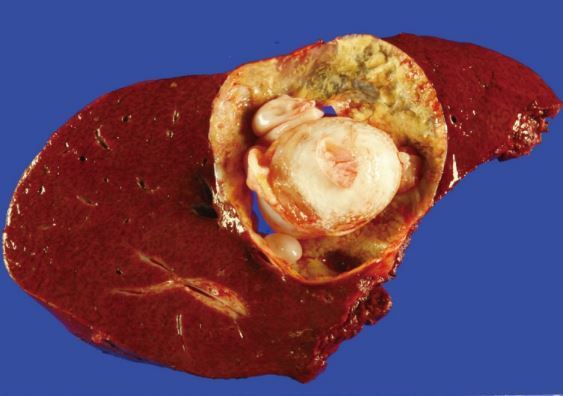 Gross photo of echinococcal cyst vs HCC