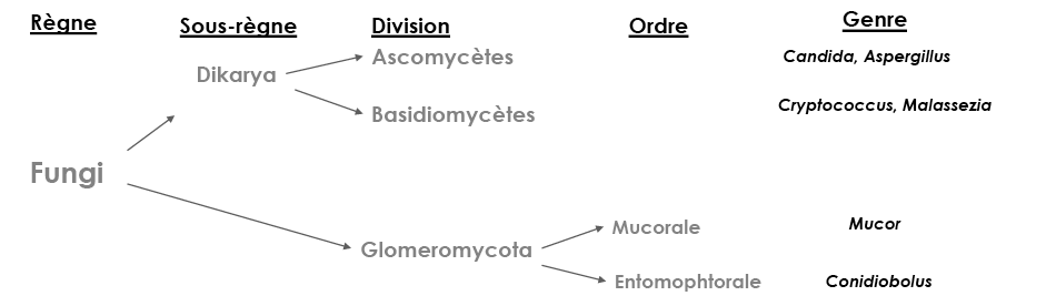 Schématiser la classification taxonomique des fungi