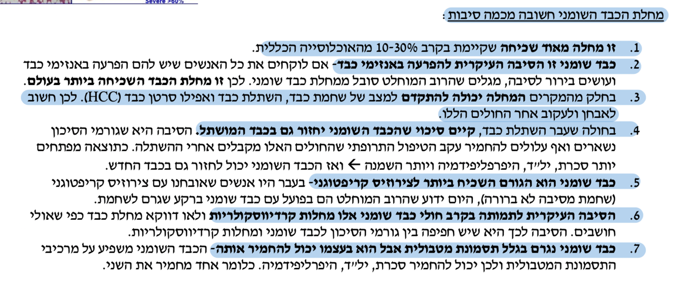 מהן המחלות השכיחות שיש לחולים בכבד שומני?