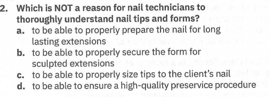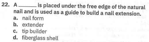 > Nails - Ch. 9 - Nail Tips and Forms > Flashcards
