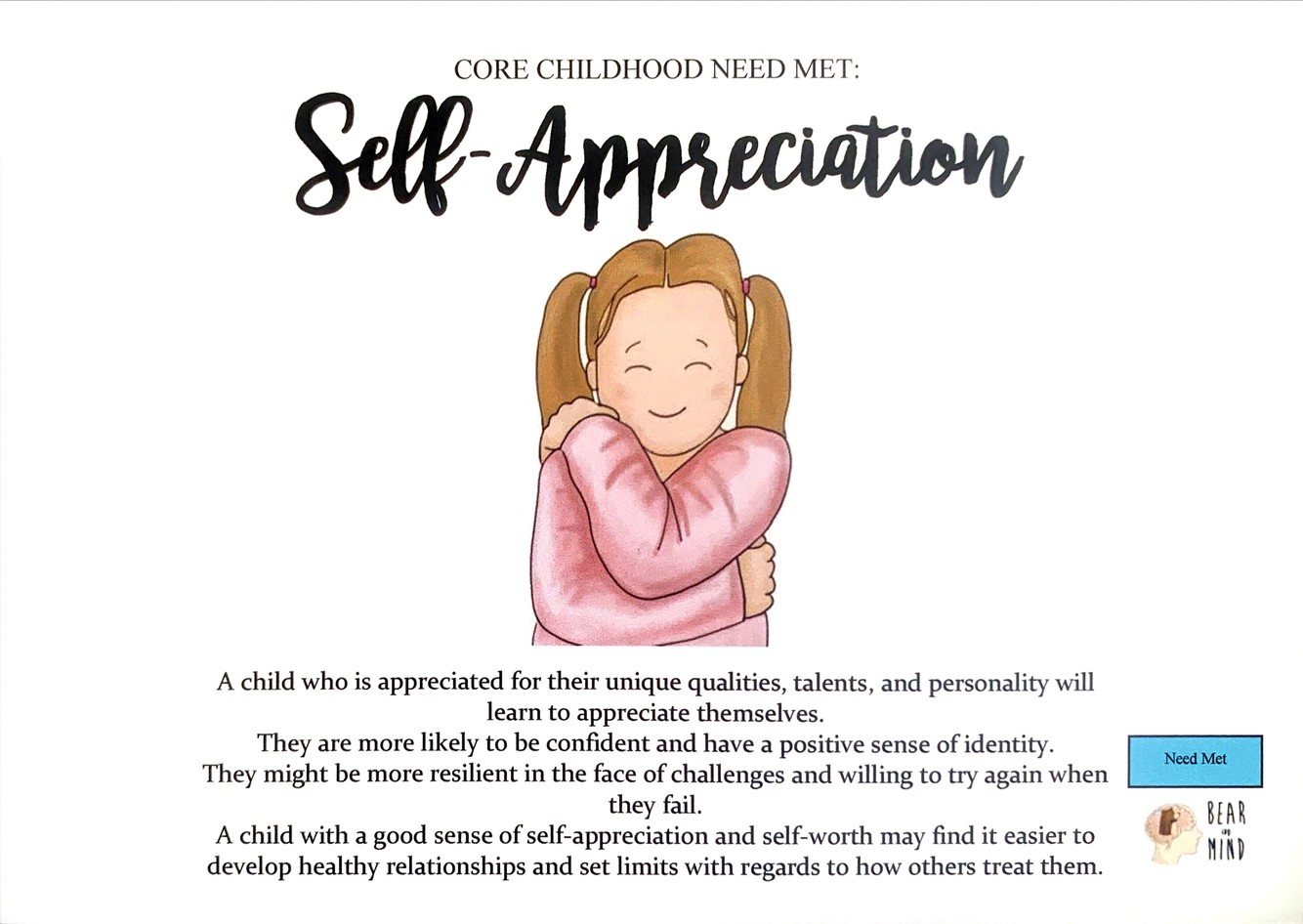 A child with a good sense of self-appreciatsion and self-worth may find it easier to develop healthy relationships and set limits with regard to how others treat them