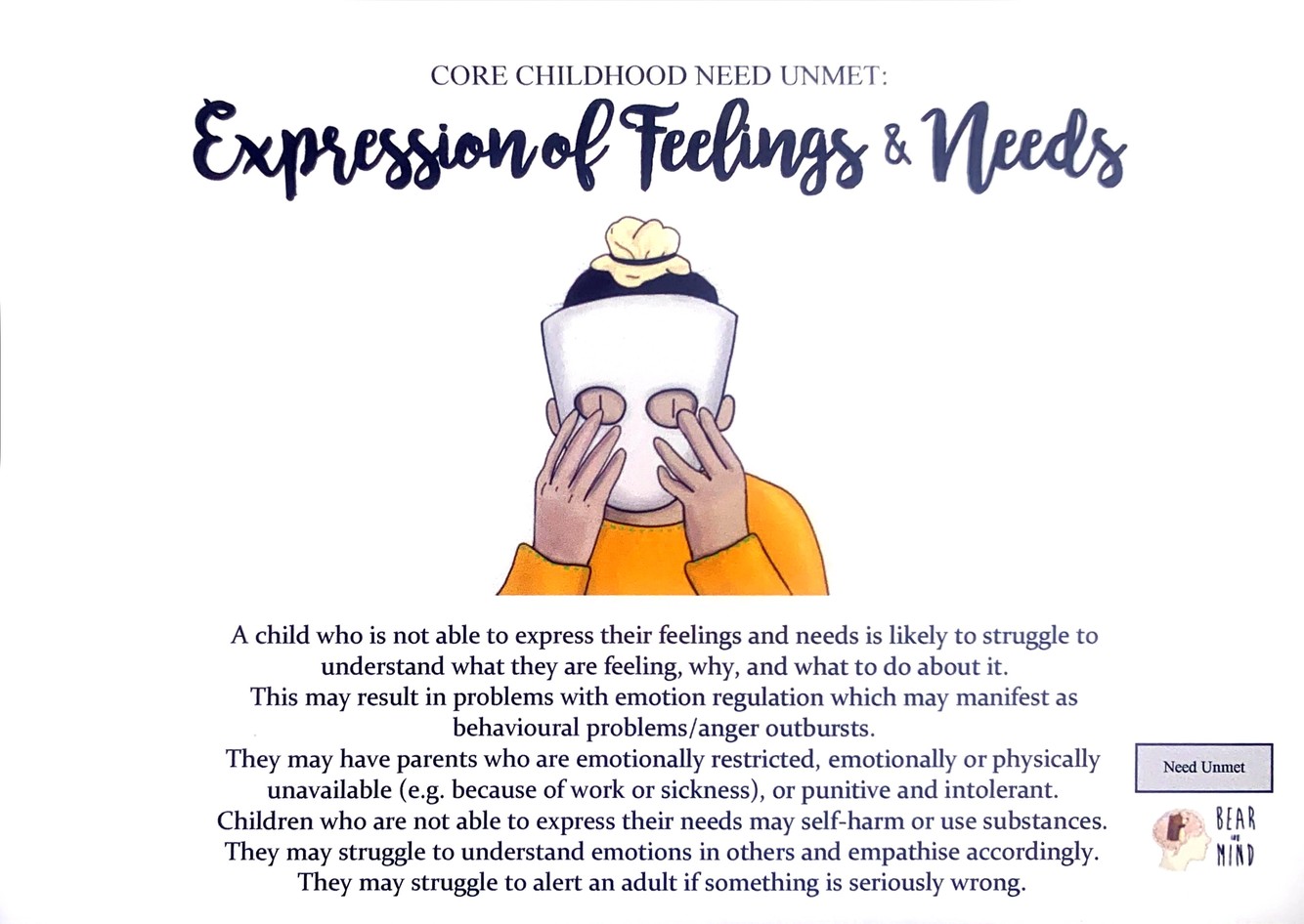 A child who is not able to express their feelings and needs is likely to struggle to understand what they are feeling, why, and what to do about it