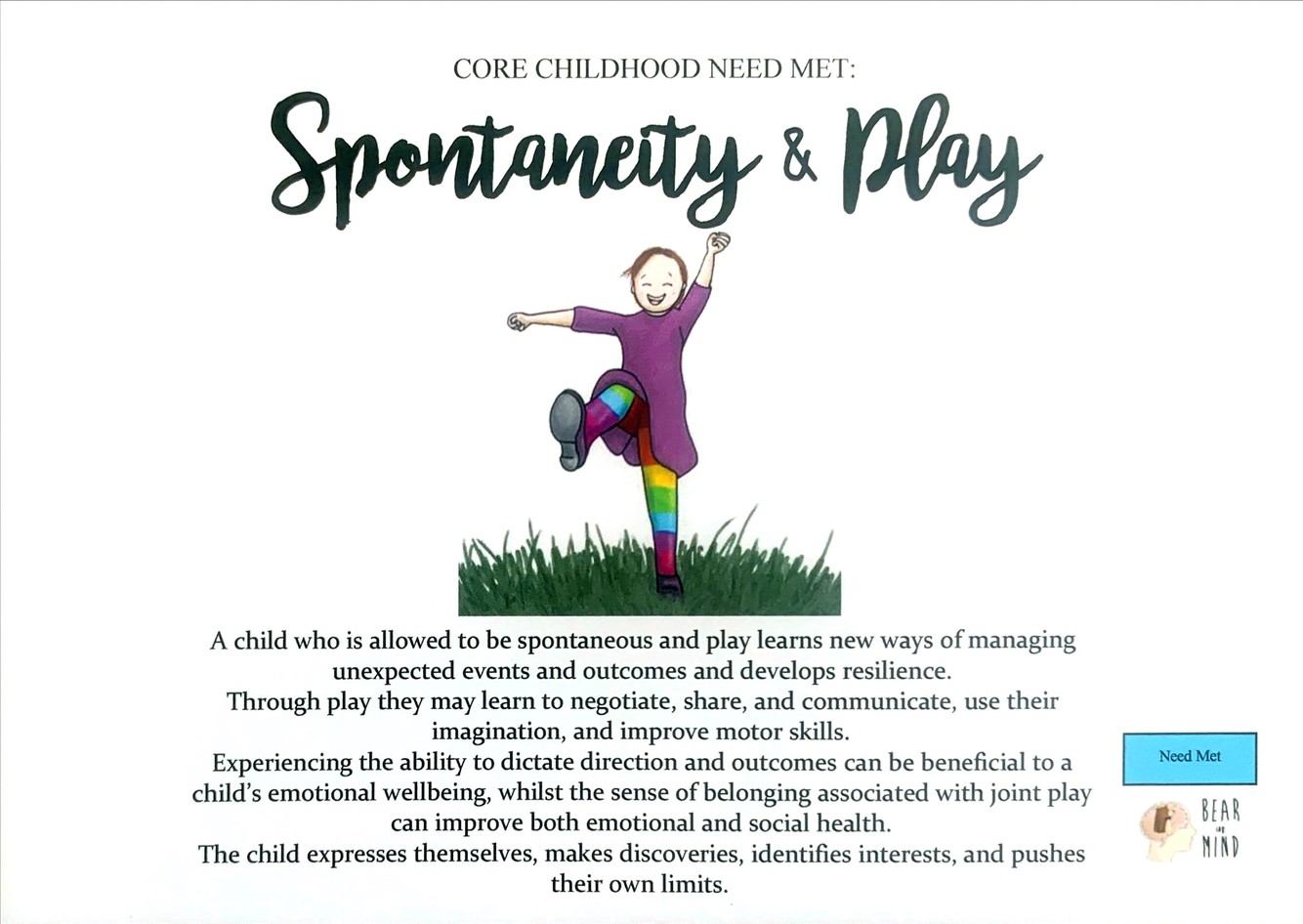 A child who is not allowed to play or be spontaneous misses opportunities to learn, innovate, express themselves, and socialize