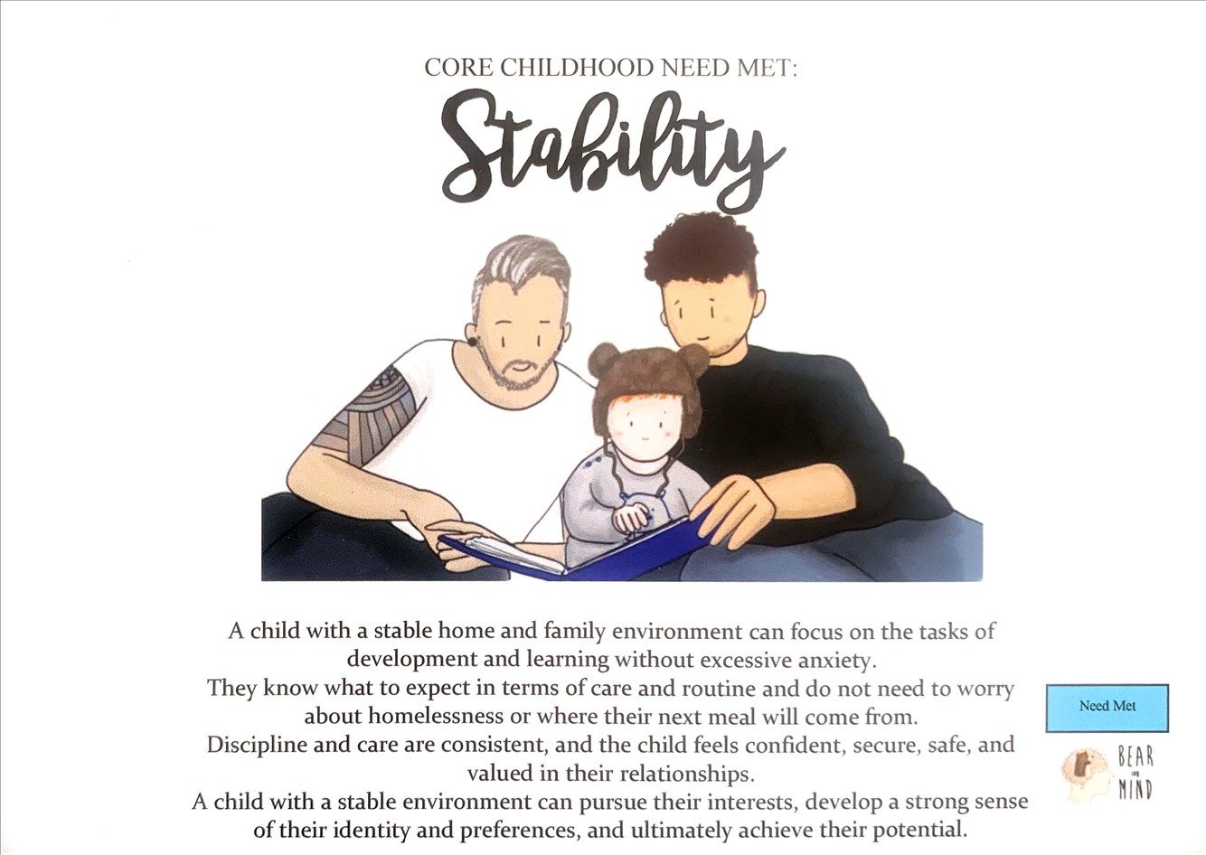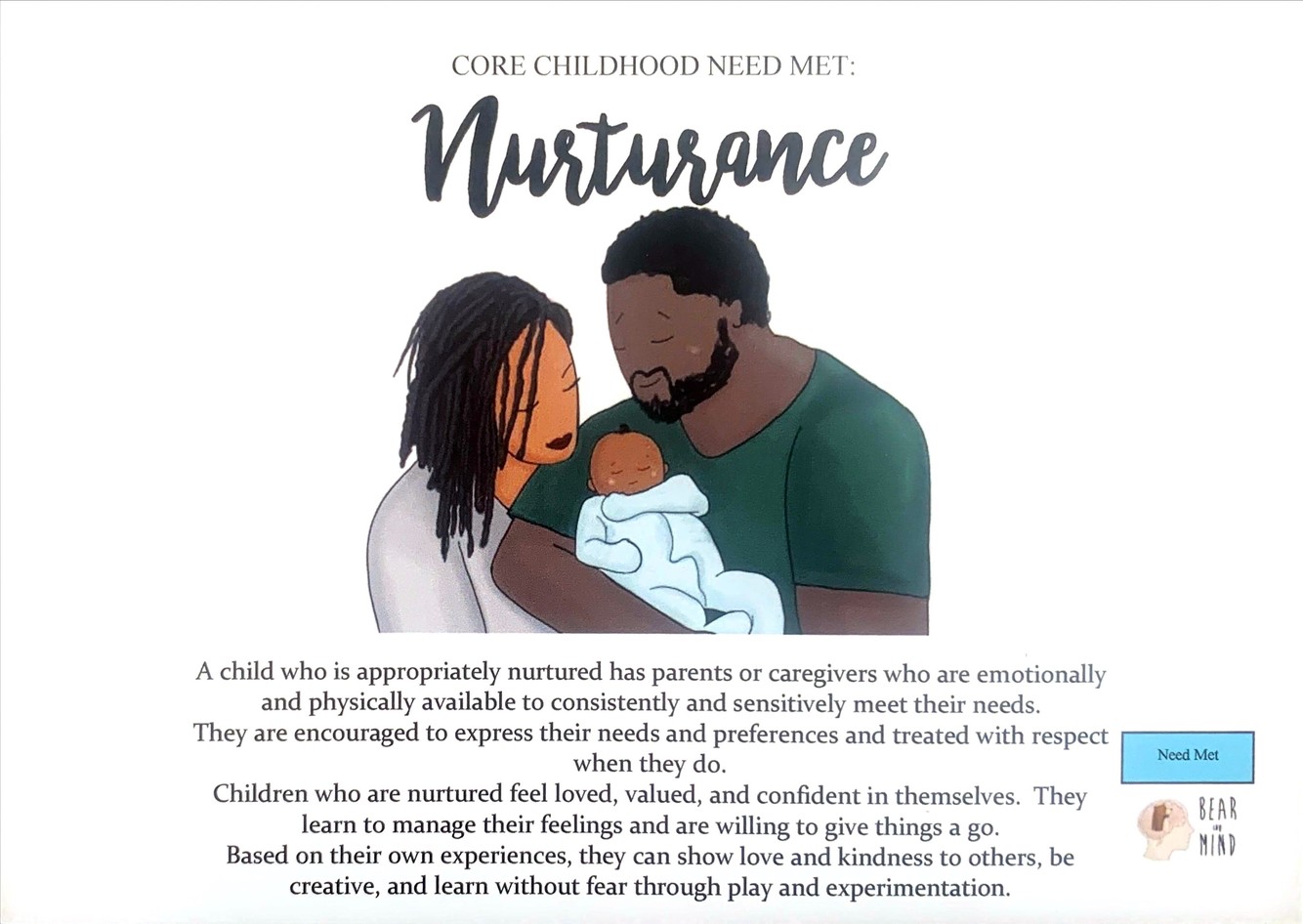 A child who is appropriately nurtured has parents or caregivers who are emotionally and physically available to consistently and sensitively meet their needs