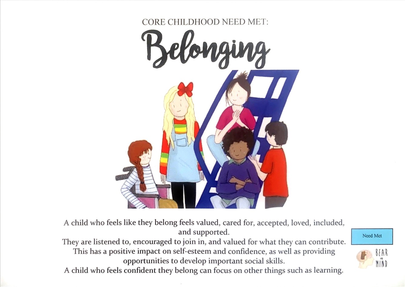 A child who feels like they belong feels valued, cared for, accepted, loved, included, and supported