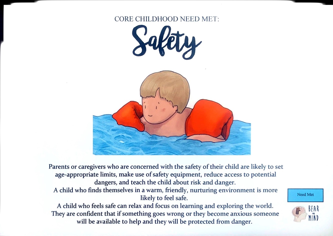 A child who feels safe can relax and focus on learning and exploring the world