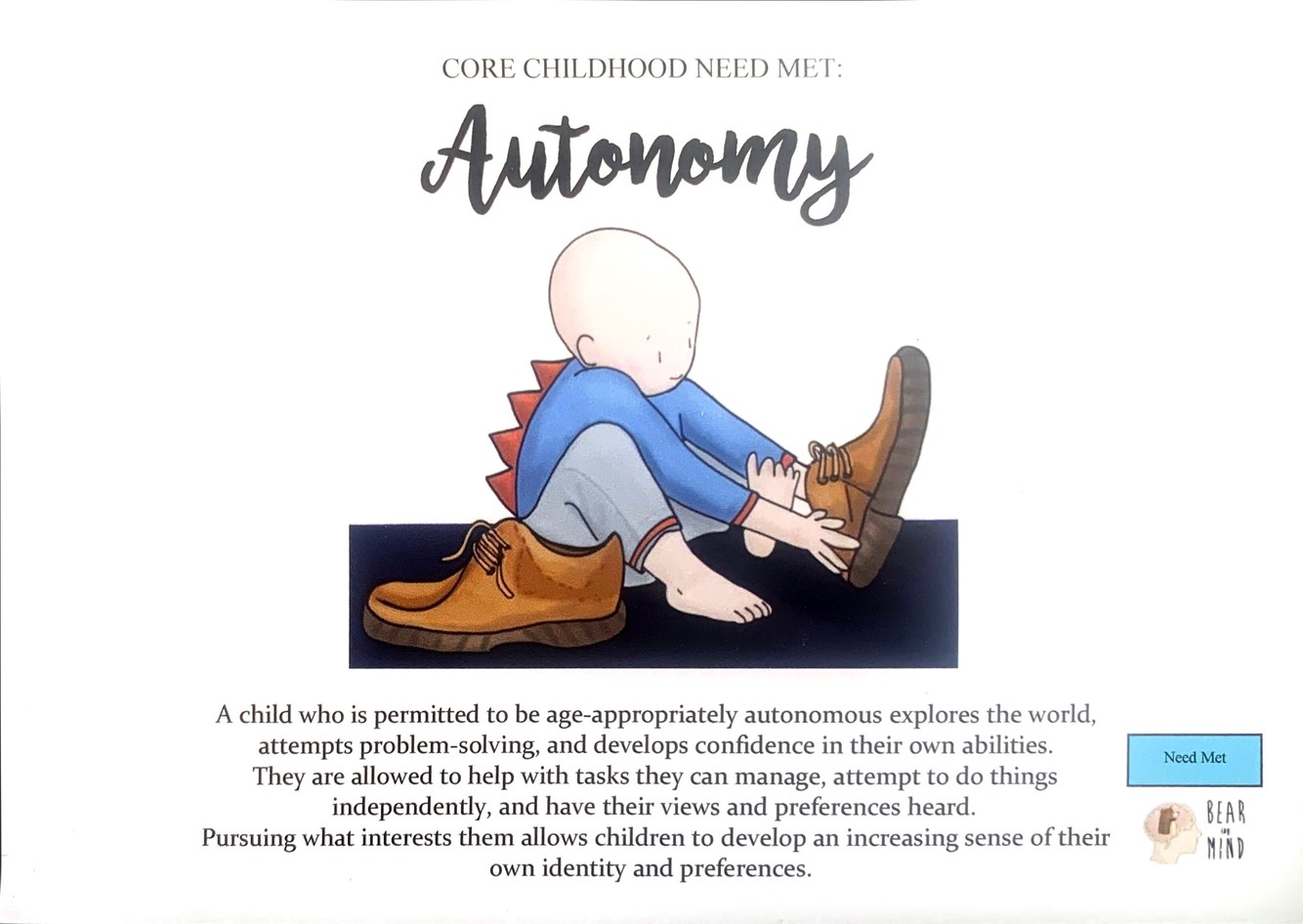 A child who is permitted to be age-appropriately autonomous explores the world, attempts problem-solving, and develops confidence in their own abilities