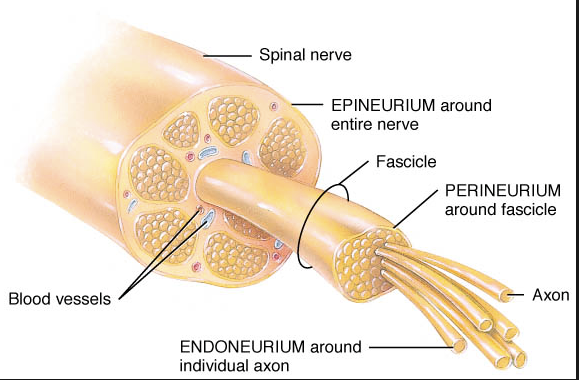 • Fascicles or bundles ( groups of sheathed axons) of nerve fibres