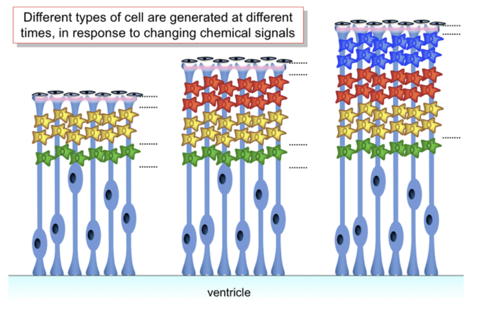 Over time, 6 cortical cell layers differentiate to become diff nerve cell types 🤯