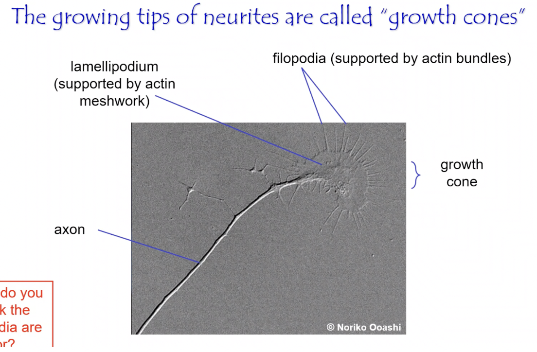 Attractive receptors bind specific signals, initiating actin bundle growth –the filopodia get longer in the direction of the signal