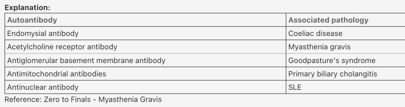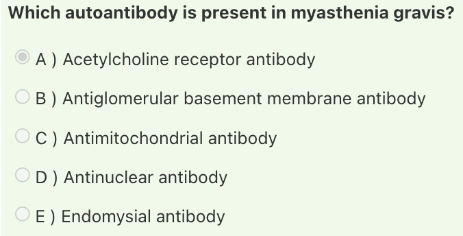 Answer: Acetylcholine receptor antibody