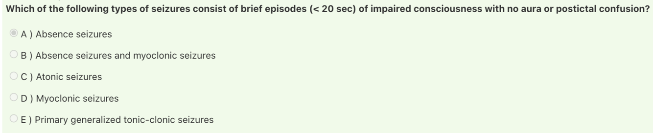 Answer: Absence seizures
