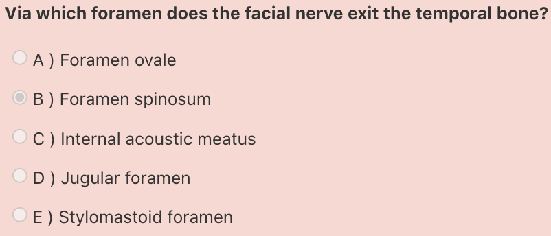 Answer: Stylomastoid foramen