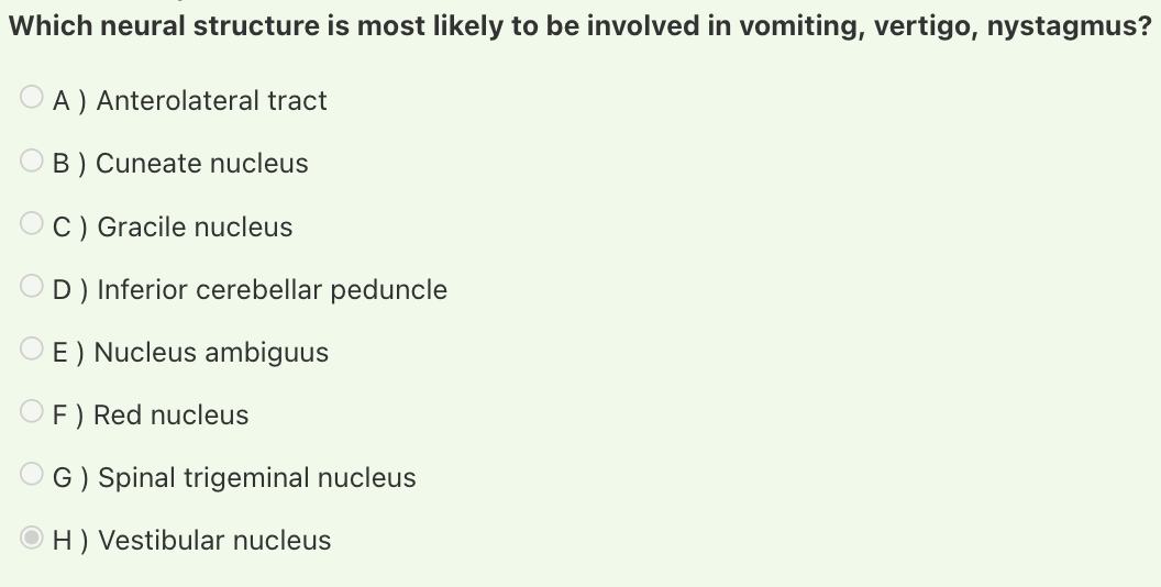 Answer: Vestibular nucleus