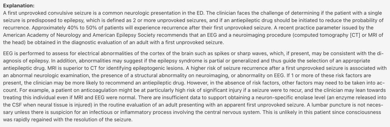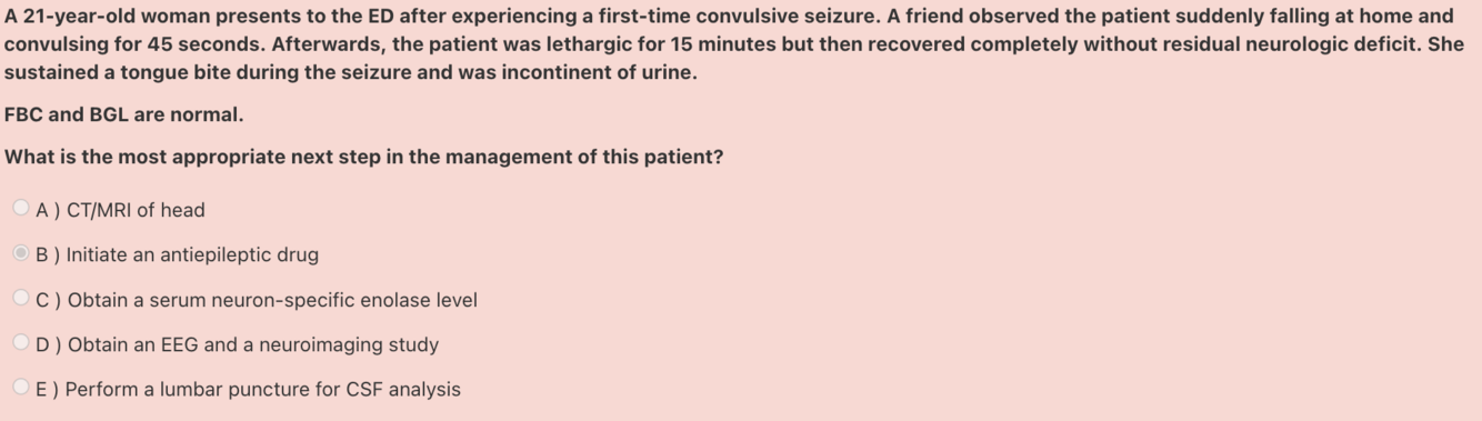 Answer: Obtain an EEG and a neuroimaging study