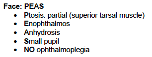 What are the facial examination findings of Horner’s Syndrome?