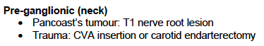 What are the preganglionic causes of Horner’s Syndrome?