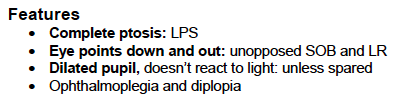 What are the features of Oculomotor Nerve Palsy?