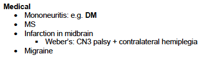 What are the Medical causes of Oculomotor Nerve Palsy?