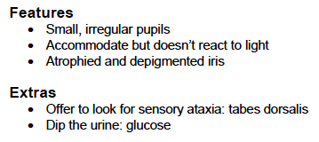 What are the features of Argyll Robertson Pupil?