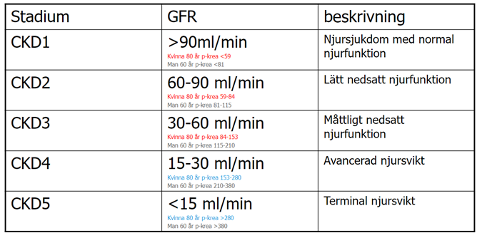 Vid under 20 % av normalt GFR (kan ske snabbt eller långsamt)