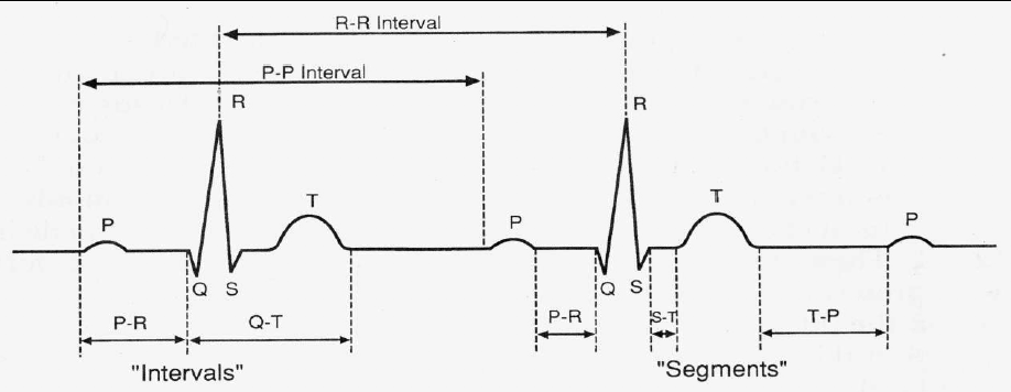 RR interval –> becomes shorter when heart rate increases (tachycardia)