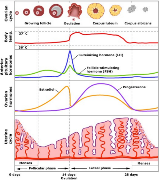 Förklara detta i fyra steg, förklara också vad som händer vid bortfallet av endometriet, håll det enkelt