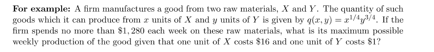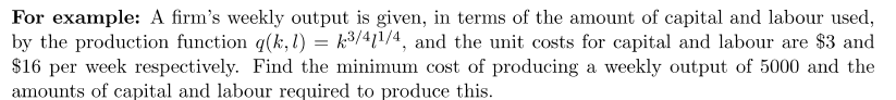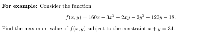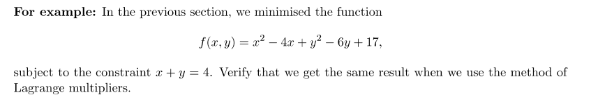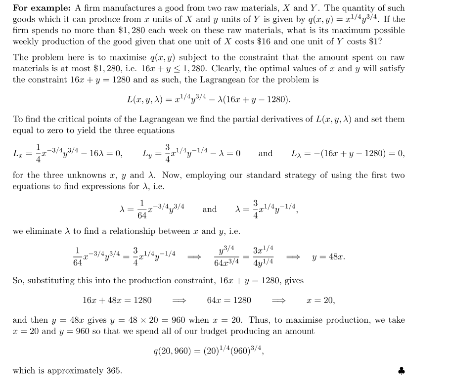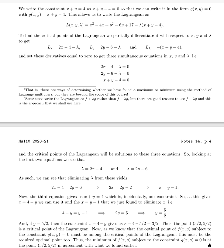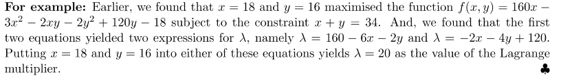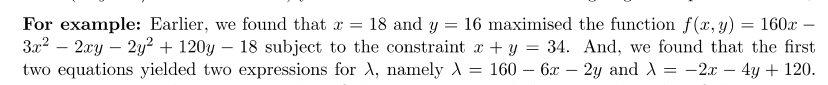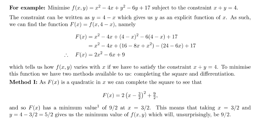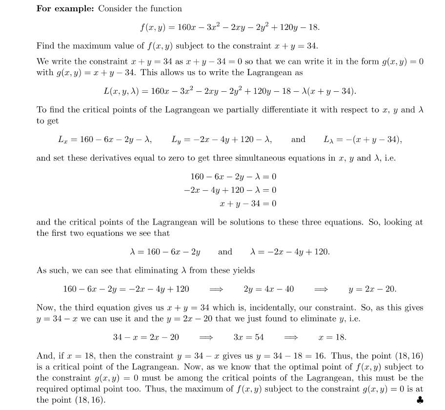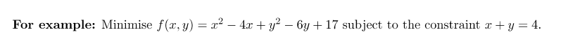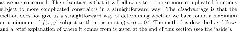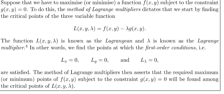 We are going to generalise the method of optimising functions of 2 variables in the presence of constraints that we saw in notes 11 and 13