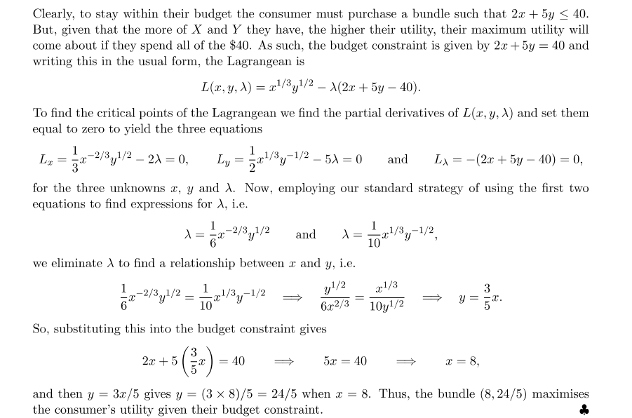 find the value of x and y then sub into constraint to find x and y, but when finding x you get the equation you get and equal it to the rearranged constraint to find what y is then sub to get x.