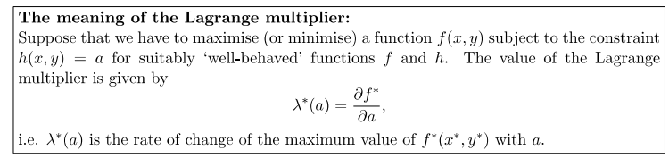 Now we are going to look at economic interpretations of the lagrangean multiplier?