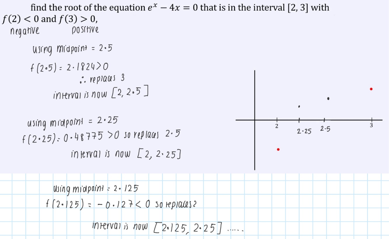 Halving the given interval each time using midpoints