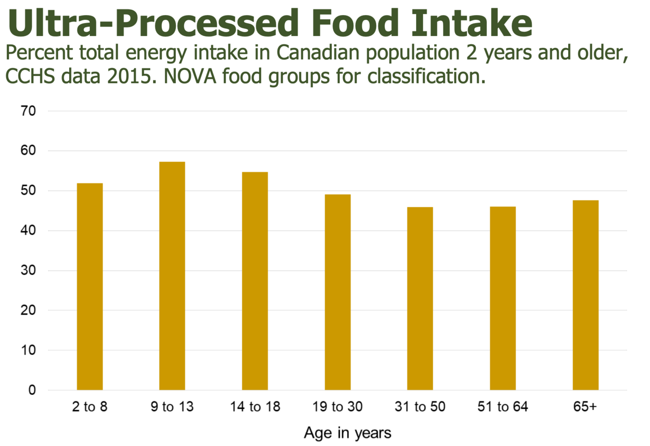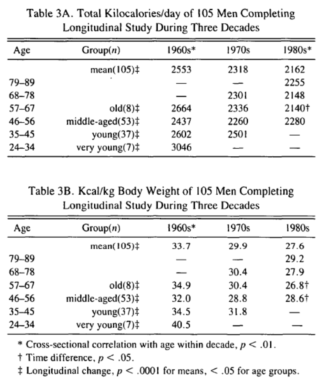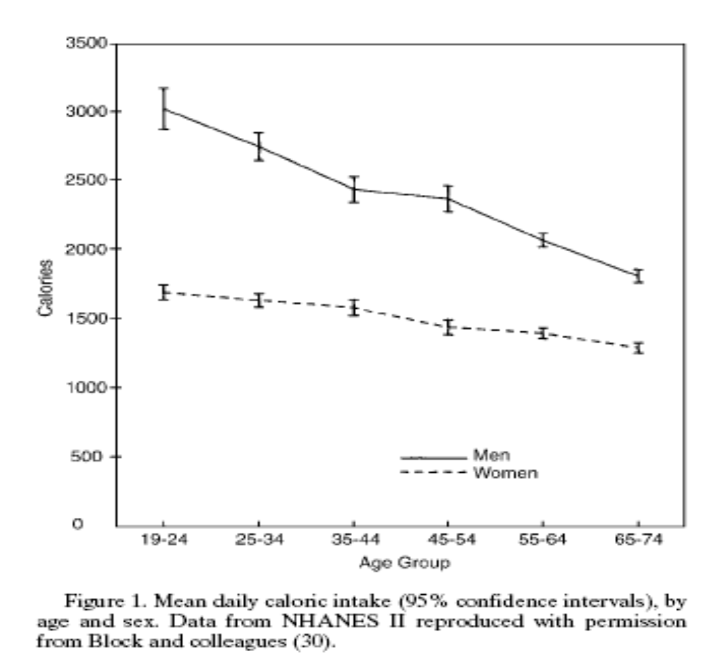 overall energy intake appears to decrease with increasing age with decreased food group consumption