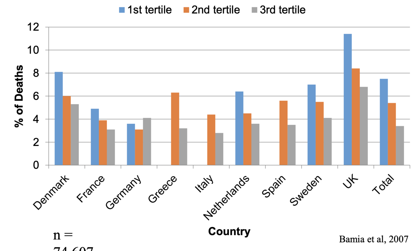 % Deaths in EPIC by Tertile of Plant-based Food Intake