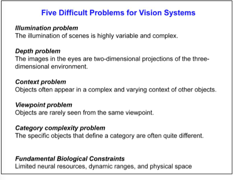 Correctly interpreting visual images involvses dealing with one ore more of this difficult general problems (plus finamental biological constraings).