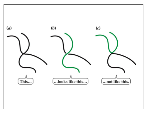 The Gestalt principle of “good continuation” contour elements that are consistent with a smooth curve tend to be grouped together.
