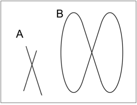 Because of good continuation, the two straight line segments in A tned to look like a pair of crossing “sticks” Because of the closure of the same two line segments tend to be split at the middle to become parts of two “butterfly wings”