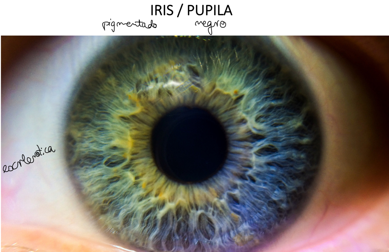 Iris, pupila y esclerotica