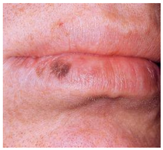 A brown macule - a flat discoloration