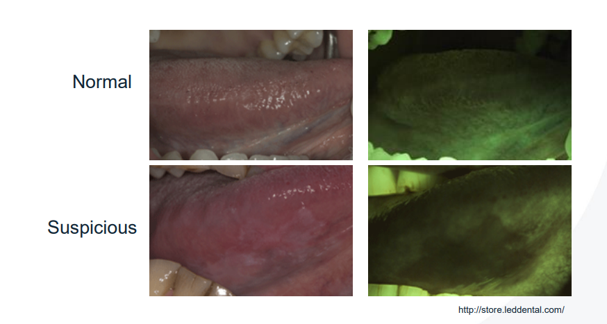 What are some of the features of pathology that can be observed by a light based system such as Velscope?