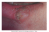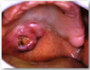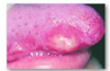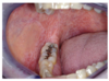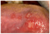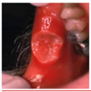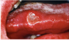 1. Ulcer (epithelium lost) - if it is yellow tissue more likely to be an ulcer